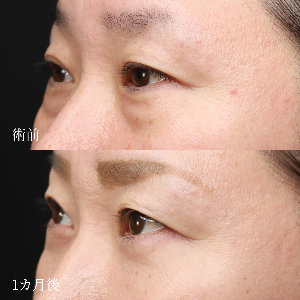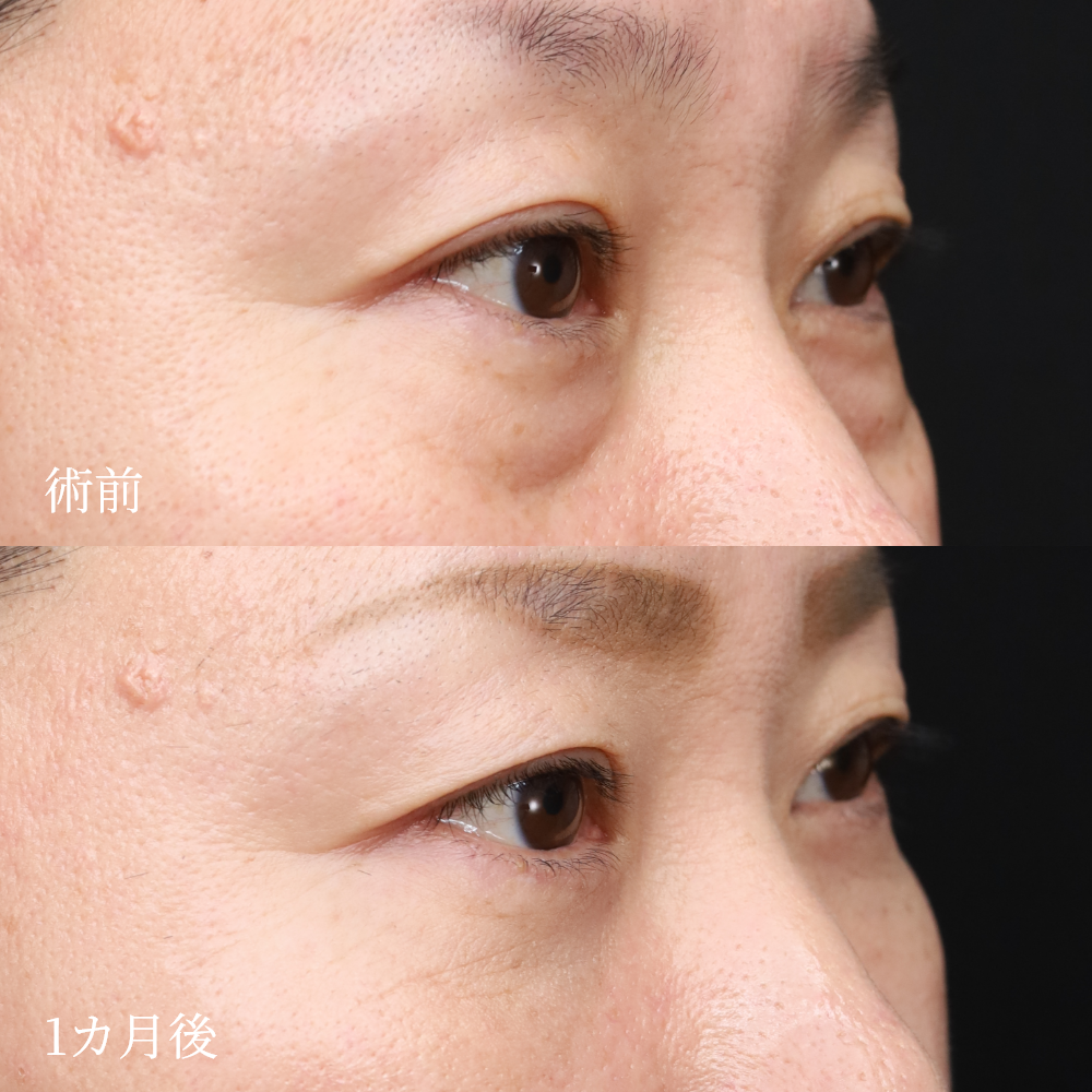 施術概要 下まぶたの裏側から脂肪を移動し、クマの原因であるふくらみとへこみを同時に改善する施術です。
